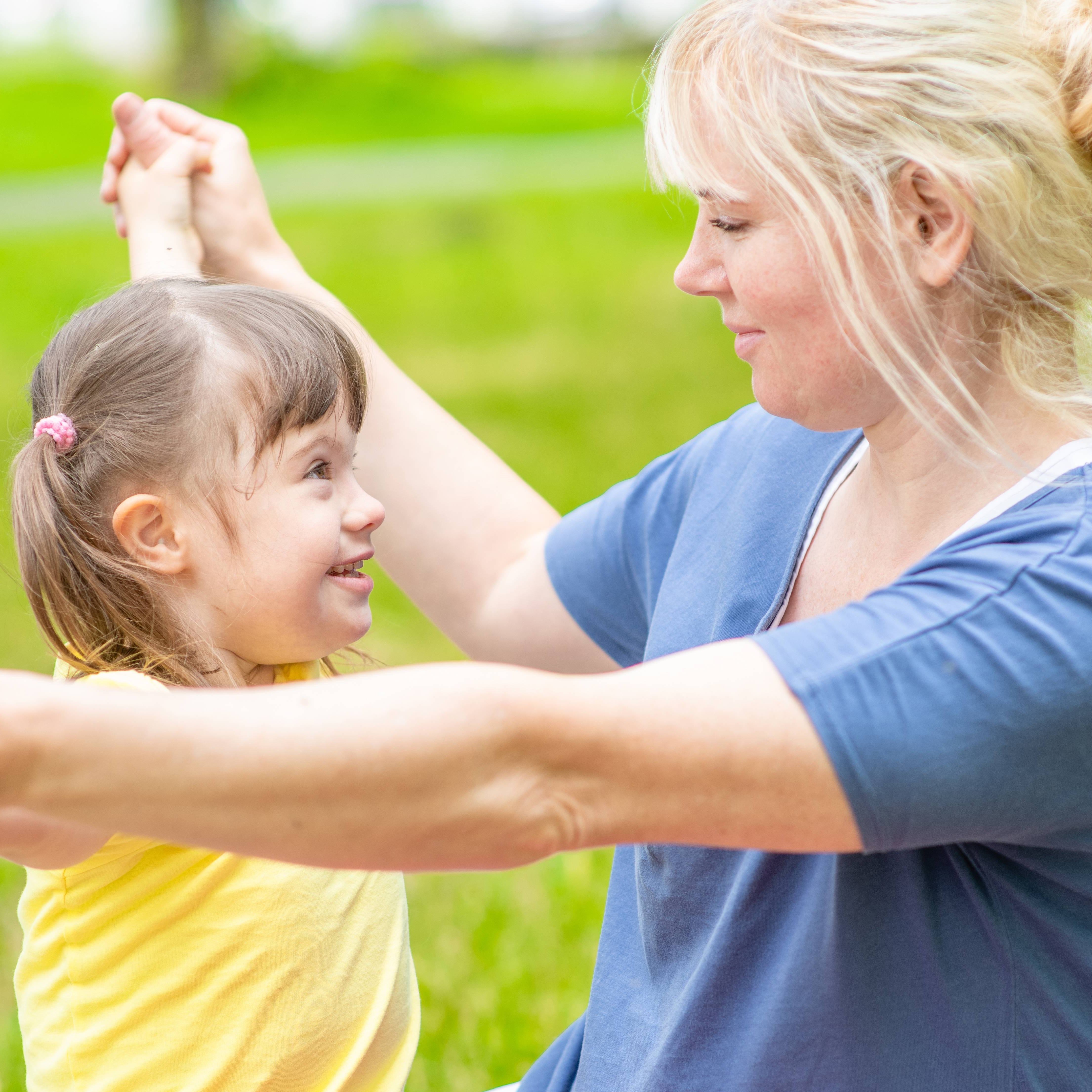 Yoga für Kinder mit dem Down-Syndrom. Mit dabei ist immer eine Bezugsperson.